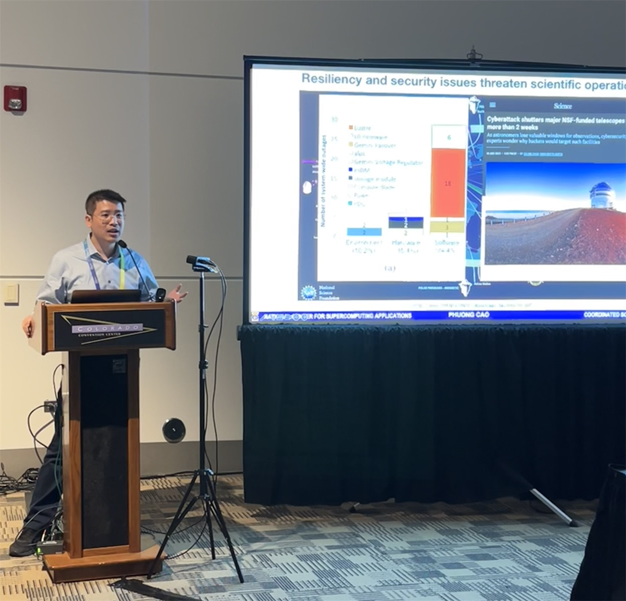 Cao, as a TrustedCI Fellow, has been working with the NSF Cybersecurity Center of Excellence, to bring cutting edge techniques such as formal verification, securing Jupyter Notebooks, high-fidelity cyber attacks analyses and visualization, security testbed for preempting ransomware, and quantum computing to the field of secure high performance computing. Most recently, he is the principal investigator in a $200,000 award from the Office of Advanced Cyberinfrastructure, NSF, for a plan on “Quantum-Resistant Cryptography in Supercomputing Scientific Applications.” The Co-Principal Investigators are Anita Nikolich, Director of Research and Technology Innovation and Research Scientist, School of Information Sciences, and NCSA research scientist; Ravishankar Iyer ECE George and Ann Fisher Distinguished Professor of Engineering and NCSA researcher, and Santiago Nunez-Corrales NCSA researcher and faculty affiliate at the Informatics Department of the School of Information Sciences and The Illinois Grainger Engineering IQUIST center.